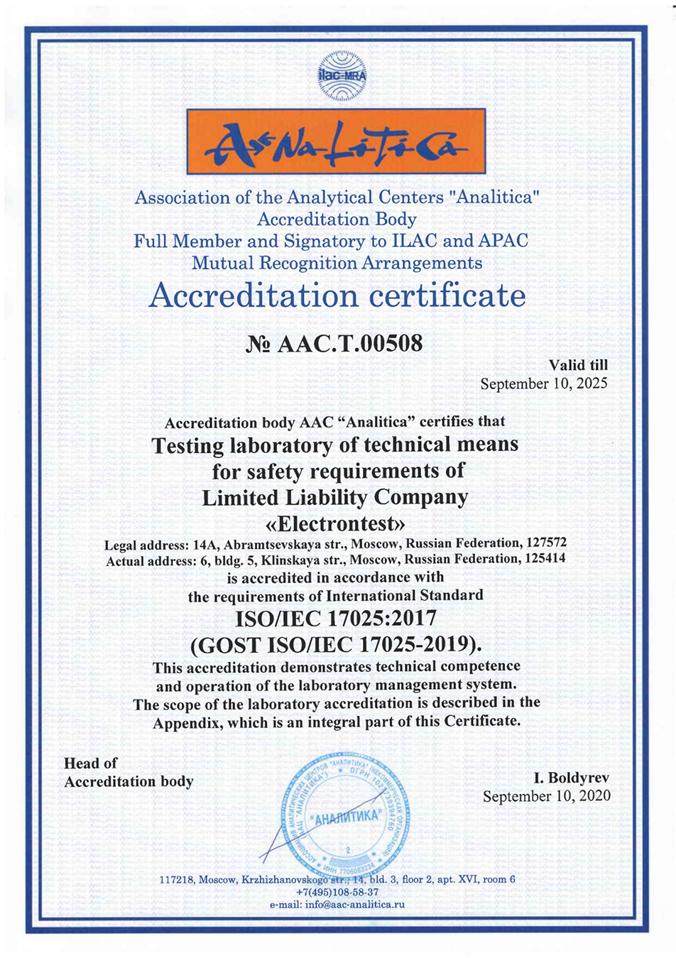 The ElectronTest Testing Center includes the ElectronTest Laboratory, accredited by Rosakkreditatsiya to conduct technical tests of medical devices. In addition, it comprises a clinical diagnostic laboratory (CDL), licensed by Roszdravnadzor to perform clinical diagnostic studies and accredited by the EAEU to conduct clinical laboratory tests required for In Vitro medical device registration.